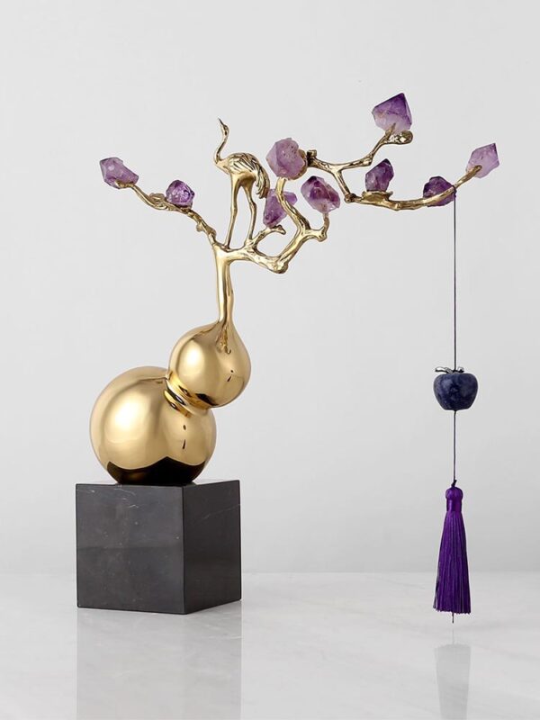 - Thiết kế nghệ thuật: Sự kết hợp giữa hình dáng hồ lô truyền thống và các nhánh cây uốn lượn gắn đá tạo nên một tác phẩm nghệ thuật độc đáo, phù hợp với nhiều phong cách nội thất.