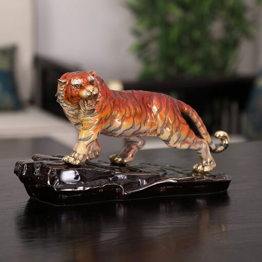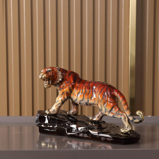 Từng chi tiết trên tượng hổ được gia công tỉ mỉ, từ ánh mắt sắc bén đến bộ lông vằn uyển chuyển, tạo nên hình ảnh hổ đầy oai nghiêm và mạnh mẽ. Tư thế gầm vang của hổ thể hiện sự tự tin, uy lực và quyền thế, làm nổi bật không gian sống và làm việc.