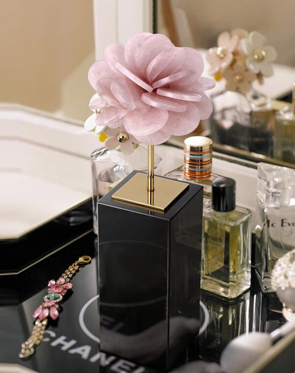 Mỗi bông hoa đều được chế tác bằng tay từ những nghệ nhân lành nghề, với từng cánh hoa được chạm khắc tỉ mỉ, tạo nên sự sống động và mềm mại như thật. Kết cấu tinh xảo của đá ngọc kết hợp với bề mặt pha lê lấp lánh khiến sản phẩm trở thành tâm điểm của mọi không gian.