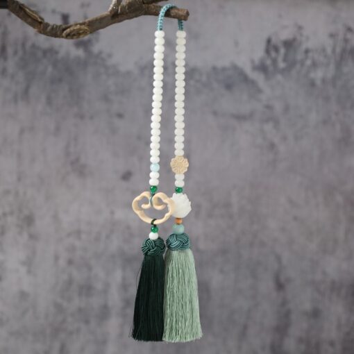 Dây treo oto hoa sen trắng kết hợp gỗ bồ đề ý nghĩa