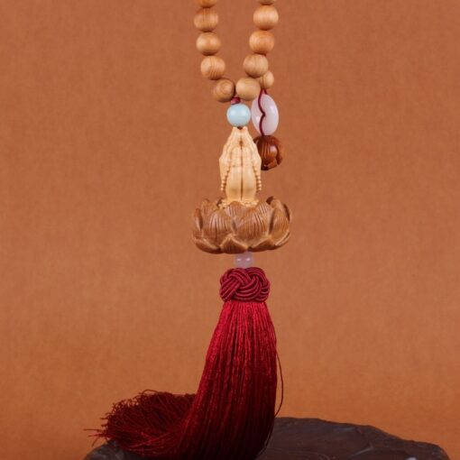 - Chất liệu cao cấp: Sản phẩm được chế tác từ các chất liệu tự nhiên, như gỗ Hoàng Dương, kết hợp với sợi tơ bền bỉ, tạo nên sự hài hòa cả về thẩm mỹ lẫn phong thủy.
