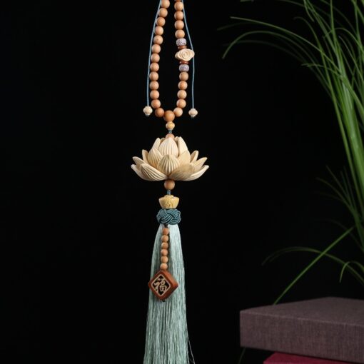 Mỗi chi tiết của Khánh Treo Xe Ô Tô Phúc Liên Thanh đều được chăm chút tỉ mỉ. Hạt gỗ tròn, dây tơ mềm mại cùng biểu tượng hoa sen khắc tinh xảo tạo nên một tổng thể hài hòa, bắt mắt. Đây không chỉ là một vật phẩm trang trí mà còn là một tác phẩm nghệ thuật giúp không gian nội thất xe thêm phần sang trọng và đẳng cấp.