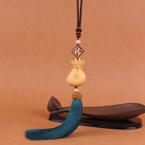 Dây treo phong thủy xe hơi túi tiền may mắn màu xanh ngọc