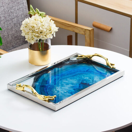 Khay đựng trà bánh kết hợp gương kính và đá mã não