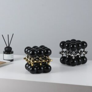 Khối Bóng Lập Phương Decor Hiện Đại là sản phẩm trang trí mang phong cách tối giản nhưng không kém phần sang trọng và độc đáo. Với thiết kế hình lập phương được ghép từ các quả bóng đen bóng bẩy kết nối bởi khung kim loại màu vàng hoặc bạc, tạo nên hiệu ứng thị giác thú vị và đầy tinh tế. Sản phẩm thích hợp để trưng bày trên bàn làm việc, kệ sách hoặc phòng khách, giúp không gian trở nên đẳng cấp và hiện đại hơn. Đây là lựa chọn hoàn hảo cho những ai yêu thích sự phá cách trong thiết kế nội thất.