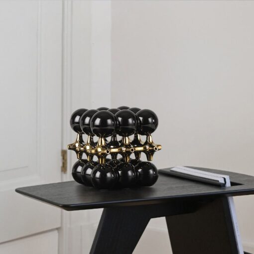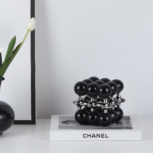 Điểm đặc biệt của Khối Bóng Lập Phương Decor Hiện Đại chính là thiết kế theo hình khối lập phương, mang đến vẻ đẹp đơn giản nhưng cực kỳ ấn tượng. Mỗi khối cầu được xếp chồng lên nhau theo một cách tinh tế, tạo thành một hình khối hoàn chỉnh, đồng thời tạo nên một sự đối xứng cân đối trong không gian. Đặc biệt, các khối cầu đen bóng kết hợp với phần chân kim loại sáng giúp sản phẩm trở nên nổi bật và dễ dàng phối hợp với các đồ vật trang trí khác trong không gian sống.