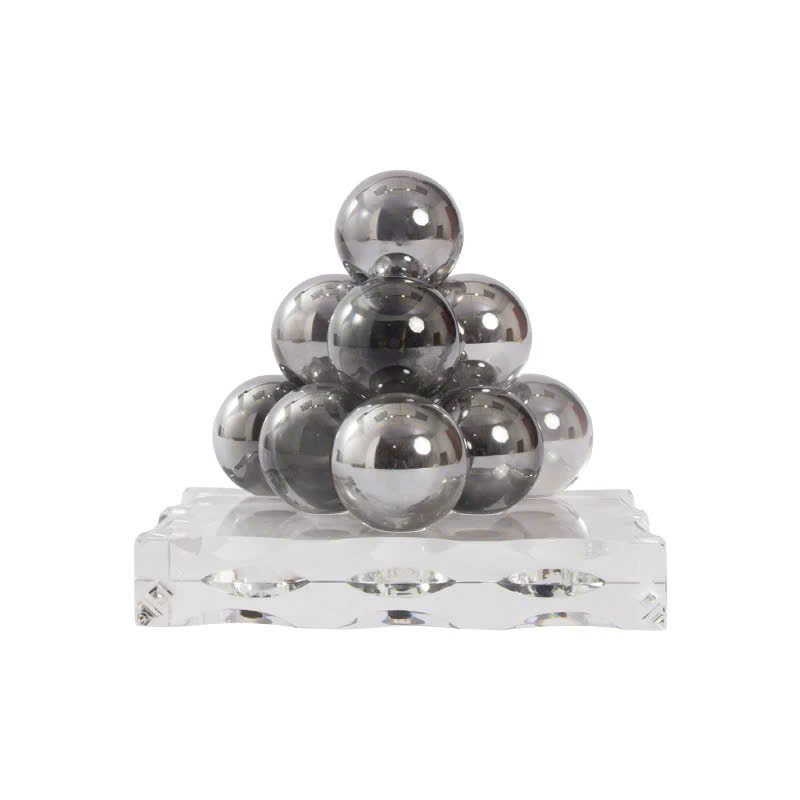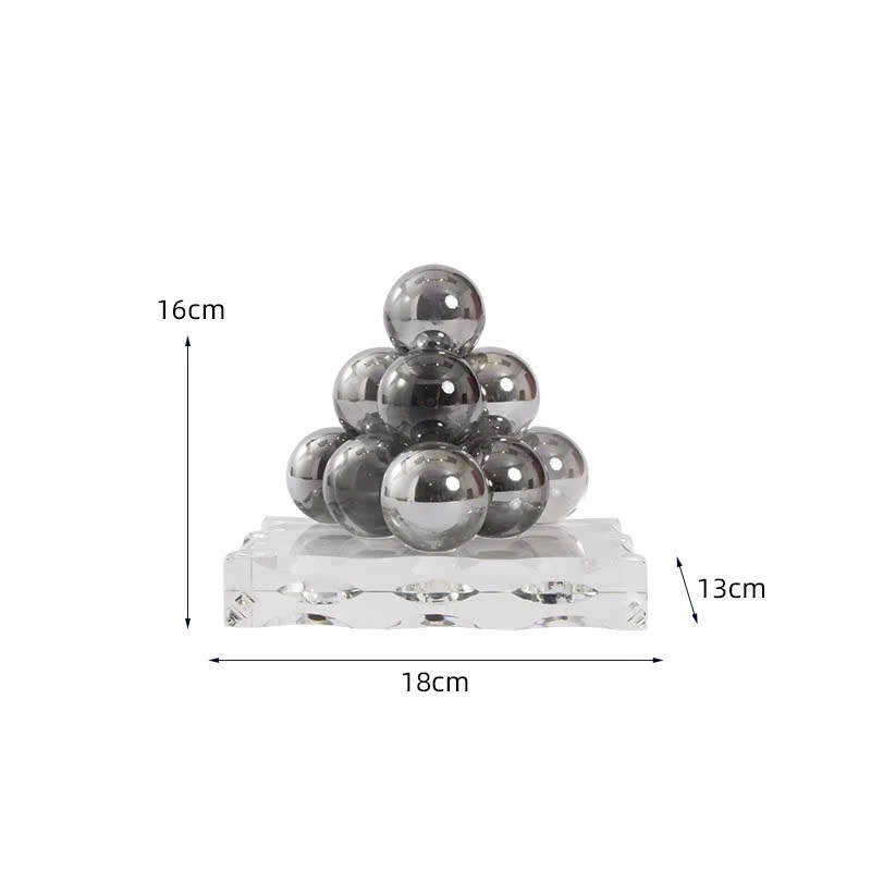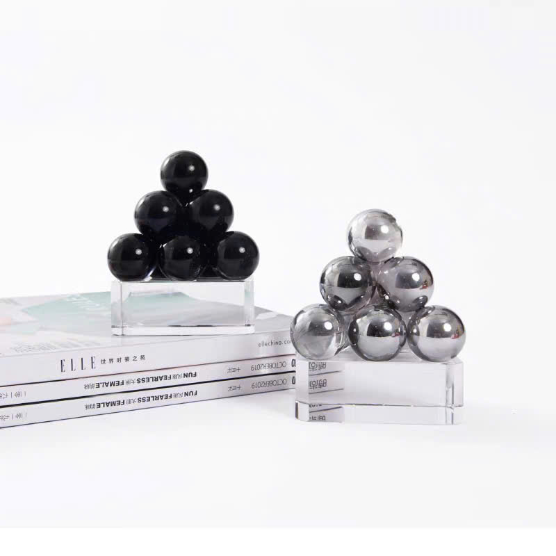 Khối trang trí bi pha lê thời thượng là món đồ decor độc đáo với thiết kế gồm những quả cầu pha lê sáng bóng, xếp chồng tạo thành hình khối hình học cân đối và hài hòa. Sản phẩm mang lại vẻ đẹp hiện đại, sang trọng, dễ dàng phối hợp với nhiều không gian nội thất khác nhau từ phòng khách đến phòng làm việc. Chất liệu pha lê trong suốt và màu sắc đen sang trọng làm nổi bật sự tinh tế và đẳng cấp. Đây là món đồ lý tưởng để làm điểm nhấn nghệ thuật, giúp nâng tầm không gian sống và làm việc.