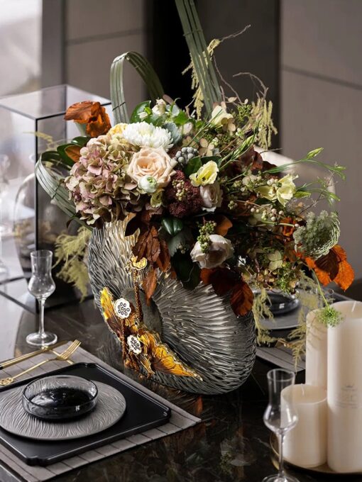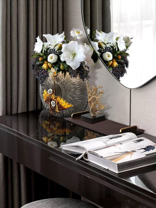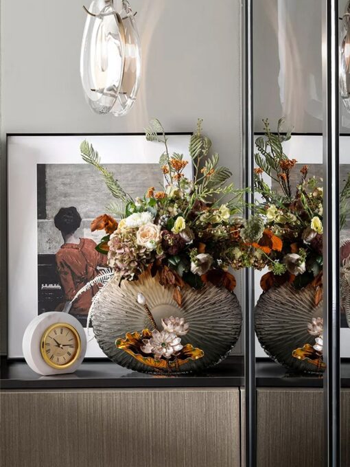 Phong cách Châu Âu luôn nổi bật với sự chú trọng đến chi tiết, tính đối xứng và sự quý phái. Lọ cắm hoa này mang đến sự hòa hợp giữa yếu tố cổ điển và hiện đại, phù hợp với nhiều không gian từ phòng khách, phòng ngủ đến văn phòng làm việc. Đặc biệt, với những đường nét uốn lượn tinh xảo và chi tiết kim loại mạ vàng, lọ cắm hoa phong cách Châu Âu sẽ là điểm nhấn hoàn hảo cho bất kỳ không gian nào.