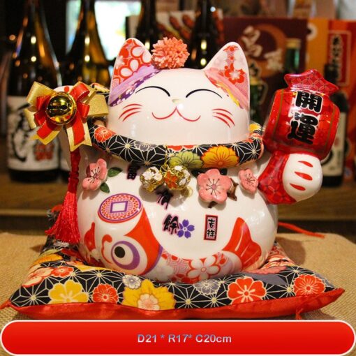 Mèo thần tài gốm sứ thường được bày ở các vị trí quan trọng trong cửa hàng hoặc văn phòng: