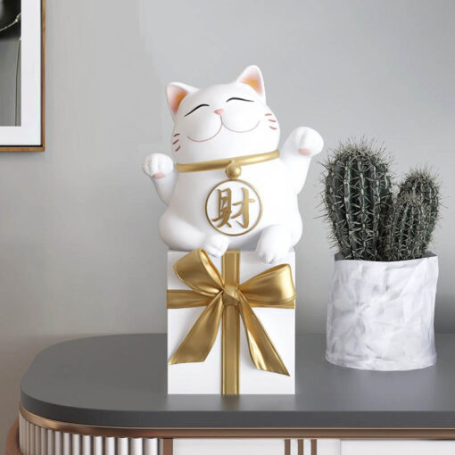 Mèo Thần Tài May Mắn được ưa chuộng không chỉ ở các cửa hàng mà còn được bài trí nhiều trong không gian sống