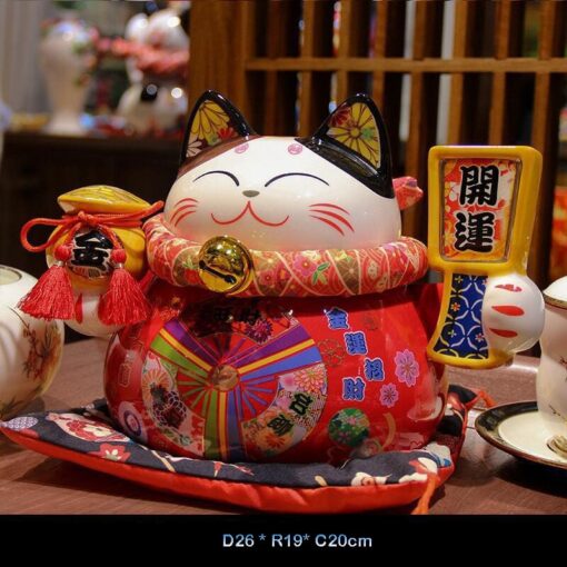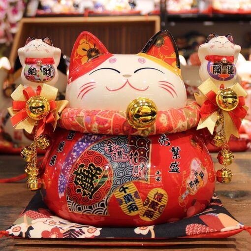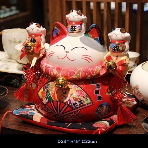 Mèo thần tài không chỉ mang ý nghĩa phong thủy mà còn là vật phẩm trang trí đẹp mắt, tạo điểm nhấn độc đáo cho không gian. Với màu đỏ rực rỡ, mèo thần tài dễ dàng thu hút sự chú ý, làm nổi bật không gian trưng bày.