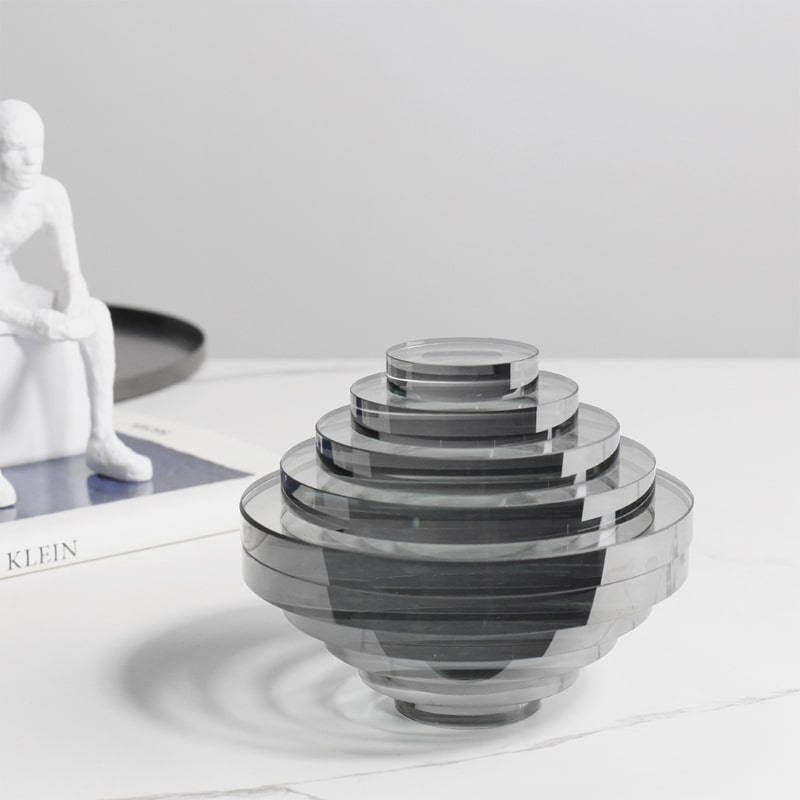 Mô hình cấu trúc tầng pha lê gây ấn tượng mạnh với thiết kế hình học hiện đại, tạo thành các lớp tầng xếp chồng tinh tế và hài hòa. Chất liệu pha lê trong suốt hoặc màu khói vừa mang lại sự sang trọng vừa tạo hiệu ứng ánh sáng lung linh, làm nổi bật không gian trang trí. Tác phẩm phù hợp làm điểm nhấn cho bàn làm việc, kệ sách hoặc phòng khách, thể hiện gu thẩm mỹ tinh tế và phong cách độc đáo của chủ nhân. Đây là món đồ decor nghệ thuật đẳng cấp, rất đáng để sở hữu.