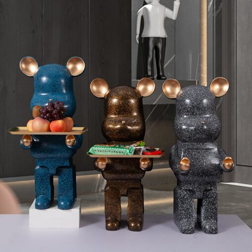 Mô hình gấu Bearbrick bưng khay là món đồ decor độc đáo và tiện dụng, vừa là vật trang trí vừa có thể làm khay đựng đồ nhỏ gọn như đồ trang sức, phụ kiện hoặc trái cây. Sản phẩm sở hữu thiết kế hiện đại, phong cách trẻ trung với bề mặt màu xanh đậm phủ lớp họa tiết tinh tế, kết hợp chi tiết mạ vàng sang trọng ở tai và khay, tạo điểm nhấn bắt mắt cho không gian. Mô hình này thích hợp để đặt ở phòng khách, phòng ngủ hay phòng làm việc, mang đến sự sinh động và tiện lợi cho không gian sống.