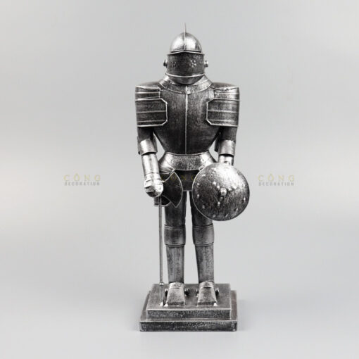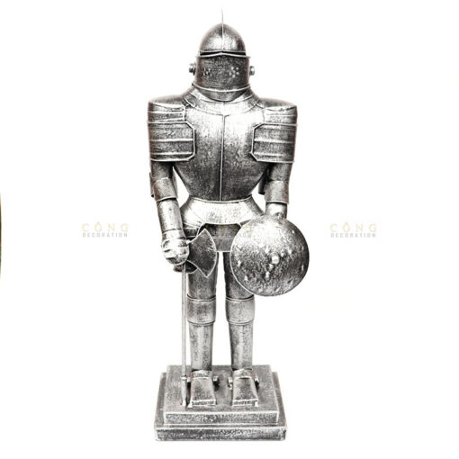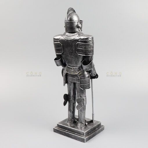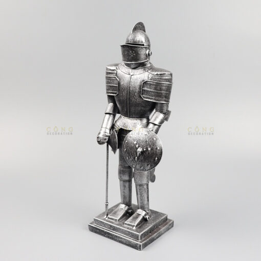 Màu bạc sáng bóng không chỉ làm nổi bật các chi tiết chạm khắc mà còn tạo ra sự sang trọng và huyền bí cho mô hình. Mô hình chiến binh này không chỉ là một sản phẩm trang trí mà còn là một tác phẩm nghệ thuật đậm chất cổ điển, có thể kết hợp hài hòa với các món đồ nội thất khác, tạo nên một không gian đầy cảm hứng.