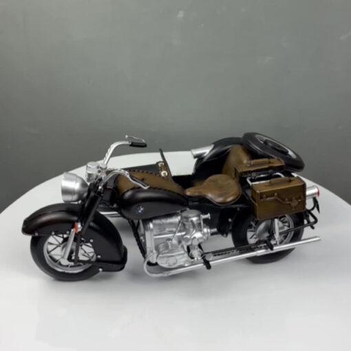 Với thiết kế lấy cảm hứng từ những chiếc xe cổ điển, mô hình sidecar 3 bánh CD181 phong cách retro mang đến cảm giác hoài cổ nhưng vẫn cực kỳ cuốn hút. Từng chi tiết nhỏ như bánh xe, tay lái, và những bộ phận kim loại khác được gia công tỉ mỉ, tạo ra một mô hình xe hoàn hảo. Màu sắc chủ yếu là các tông màu đen, bạc và nâu, mang lại vẻ ngoài mạnh mẽ, sang trọng và tinh tế. Những chi tiết như vali da và các bộ phận kim loại sáng bóng thêm phần làm nổi bật vẻ đẹp của sản phẩm.