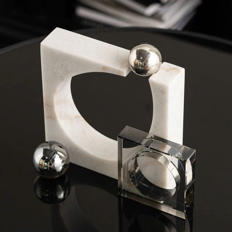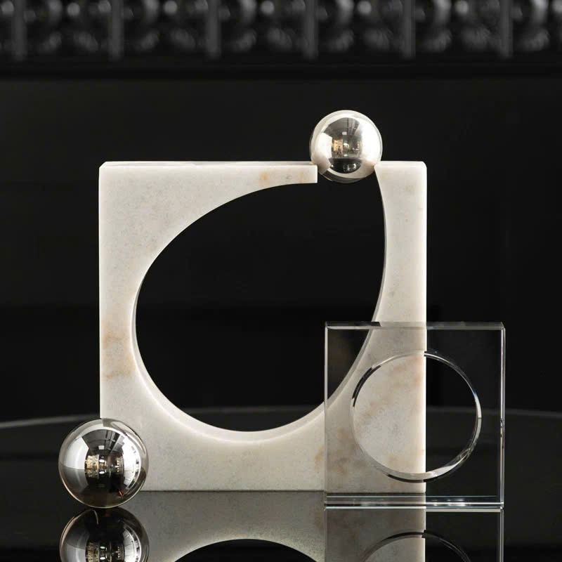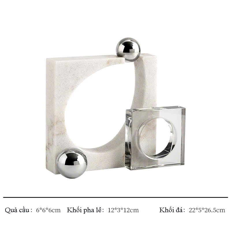 Mô hình trang trí hình học đá và pha lê này là một tác phẩm nghệ thuật hiện đại tinh tế, kết hợp hài hòa giữa đá tự nhiên và pha lê trong suốt. Thiết kế với các hình khối vuông, tròn mang tính trừu tượng cao, tạo điểm nhấn độc đáo và sang trọng cho không gian sống hoặc làm việc. Sự kết hợp giữa vật liệu đá mờ và pha lê bóng loáng tạo nên hiệu ứng thị giác bắt mắt, làm nổi bật gu thẩm mỹ hiện đại và tinh tế của gia chủ. Đây là lựa chọn hoàn hảo cho những ai yêu thích phong cách tối giản nhưng vẫn đầy ấn tượng.