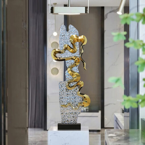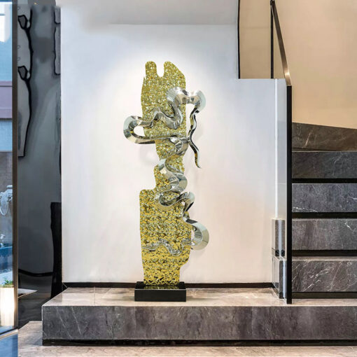 Trong thế giới trang trí nội thất, các tác phẩm điêu khắc đóng vai trò quan trọng trong việc tạo điểm nhấn nghệ thuật và làm nổi bật không gian sống. Tác phẩm điêu khắc bằng thép không gỉ với thiết kế tinh xảo như mẫu sản phẩm này mang lại sự sang trọng và phá cách, phù hợp để trang trí chân cầu thang hoặc các vị trí trang trọng trong ngôi nhà.