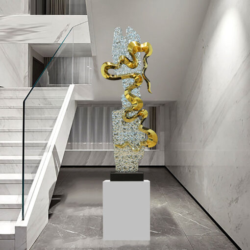 Đặt tại chân cầu thang, mô hình điêu khắc này sẽ thu hút mọi ánh nhìn nhờ vẻ đẹp lấp lánh của thép không gỉ và thiết kế ấn tượng. Đây không chỉ là một sản phẩm trang trí mà còn là một biểu tượng của sự sang trọng và đẳng cấp, giúp nâng tầm không gian sống.