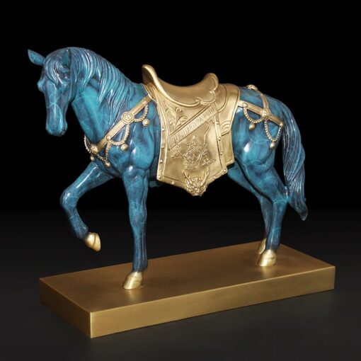 “Tượng Ngựa Phong Thủy Mãnh Lực” toát lên vẻ đẹp khỏe khoắn và uy nghi, tượng trưng cho sức mạnh bền bỉ và ý chí kiên cường trong cuộc sống. Với sắc xanh độc đáo và yên vàng nổi bật, sản phẩm không chỉ làm điểm nhấn sang trọng cho không gian mà còn thu hút vận may và tài lộc cho gia chủ. Đây là món đồ decor lý tưởng để đặt tại phòng khách, phòng làm việc hoặc nơi kinh doanh, góp phần tăng cường năng lượng tích cực và thành công trong sự nghiệp.