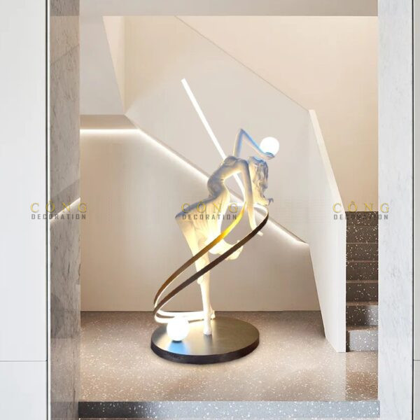 Tượng nữ thần ánh sáng vũ điệu ban mai trang trí kết hợp đèn Led.