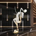 Tượng nữ thần ánh sáng vũ điệu ban mai có thể dùng trang trí tại chân cầu thang, sảnh nhà hàng, khách sạn.