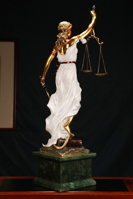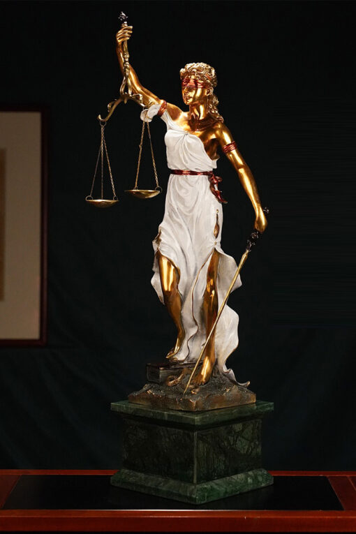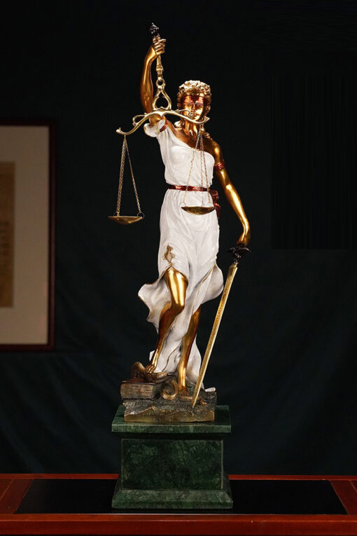 “Tượng Nữ Thần Công Lý Biểu Tượng Chính Trực” là tác phẩm nghệ thuật thể hiện sự công bằng, minh bạch và chính trực. Tượng khắc họa hình ảnh nữ thần mang kiếm và cán cân, biểu trưng cho công lý và sự phán xét công bằng. Với thiết kế tinh xảo bằng đồng, tượng mang nét trang nghiêm, uy nghiêm, phù hợp để trang trí trong văn phòng luật sư, tòa án hoặc không gian làm việc, tạo cảm hứng về đạo đức và sự trung thực trong công việc và cuộc sống. Đây là món đồ ý nghĩa và sang trọng cho không gian chuyên nghiệp.