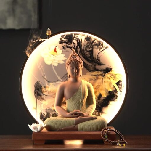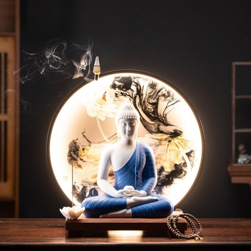 Phật A Di Đà Thiền Tịnh Bình An là biểu tượng của sự thanh tịnh, an lạc và giác ngộ. Tượng Phật với nét mặt từ bi, ngồi thiền trong tư thế an nhiên, thể hiện sự bình yên sâu sắc. Ánh sáng vòng tròn phía sau tôn lên vẻ linh thiêng và thanh thoát của tác phẩm, kết hợp cùng làn khói trầm hương dịu nhẹ mang đến không gian thư giãn và thanh lọc năng lượng. Sản phẩm phù hợp để trang trí phòng khách, phòng làm việc hoặc không gian thiền định, giúp gia chủ cảm nhận sự an nhiên và cân bằng nội tâm.