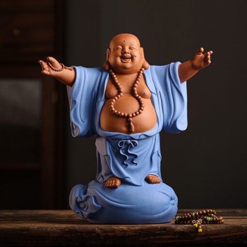 Tượng Phật Di Lặc bằng gốm màu xanh dương