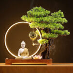- Khói Trầm Thư Giãn: Tiểu cảnh kết hợp với trầm hương tạo không gian thư giãn, dễ chịu và tĩnh lặng cho gia chủ.