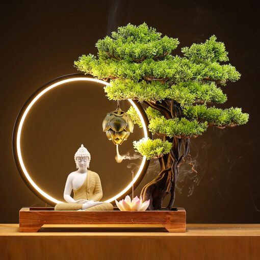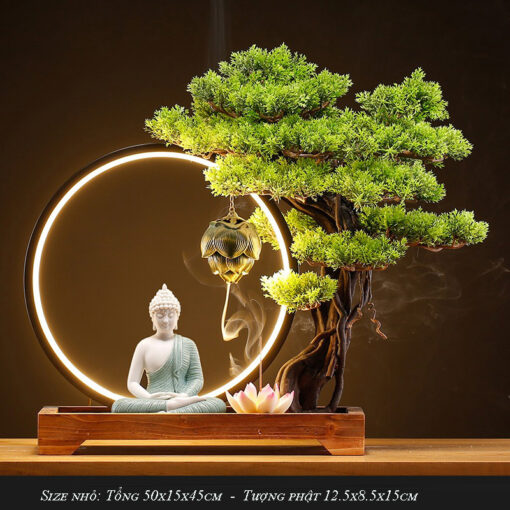 Đài sen là biểu tượng của sự thuần khiết và giác ngộ trong Phật giáo, trong khi Phật Thích Ca là biểu tượng của sự từ bi và trí tuệ. Khi kết hợp với trầm hương, sản phẩm này mang lại sự thanh tịnh, giúp gia chủ duy trì một không gian sống đầy đủ tài lộc và may mắn. Khói trầm hương tỏa ra từ thác khói không chỉ giúp làm sạch không khí mà còn tạo ra không gian thư giãn tuyệt vời.