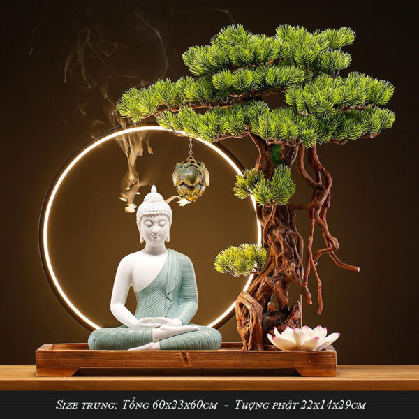 - Kích thước Loại Trung Bình: Tổng D60cm x R23cm x C60cm (Phật 22x14x29cm)