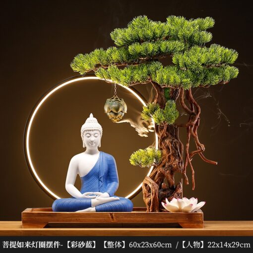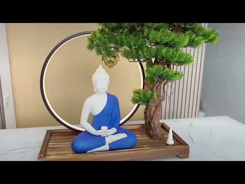 Phật Thích Ca An Lạc Đài Sen là món đồ decor tinh tế, biểu tượng cho sự bình an và thanh tịnh. Tượng Phật ngồi thiền trên đài sen xanh dương, mang lại cảm giác an nhiên và tĩnh lặng. Cây tùng và vòng ánh sáng ấm áp phía sau tạo điểm nhấn hài hòa, cân bằng năng lượng tích cực cho không gian. Làn khói trầm hương dịu nhẹ giúp thanh lọc không khí, mang đến sự thư thái và dễ chịu. Sản phẩm phù hợp trang trí phòng khách, phòng làm việc hoặc nơi thiền định, mang lại sự an yên cho gia chủ.