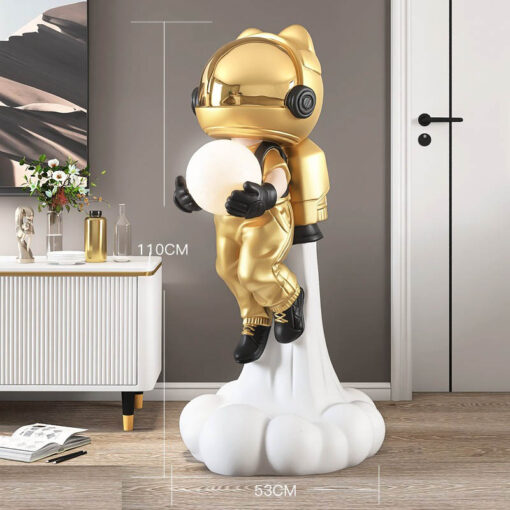 Phòng khách là nơi thể hiện phong cách sống và sự đẳng cấp của gia chủ. Tượng Phi Hành Gia Cầm Quả Cầu Trên Mây là điểm nhấn hoàn hảo để tạo ấn tượng mạnh mẽ.