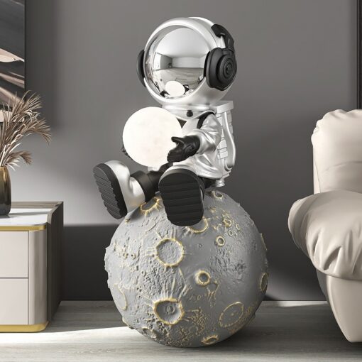 Phòng khách là nơi thể hiện phong cách sống và gu thẩm mỹ của gia chủ. Tượng Phi Hành Gia Ngắm Trăng là lựa chọn hoàn hảo để làm nổi bật không gian này.