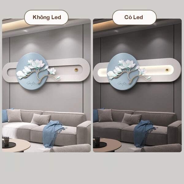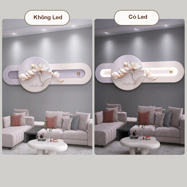 Ánh sáng là yếu tố quan trọng giúp làm nổi bật vẻ đẹp của tranh phù điêu treo tường phòng khách. Bạn có thể sử dụng đèn chiếu trực tiếp hoặc đèn LED lắp vào tranh để tạo hiệu ứng ánh sáng, làm tôn lên các chi tiết của hoa mộc lan. Đảm bảo ánh sáng không quá chói hoặc quá yếu để tạo ra không gian hài hòa và dễ chịu.