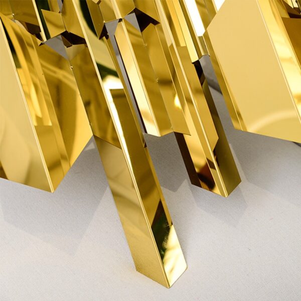 Với chất liệu hợp kim mạ vàng, sản phẩm này không chỉ mang đến vẻ đẹp sang trọng mà còn có độ bền rất cao, giúp duy trì vẻ sáng bóng lâu dài. Sự kết hợp giữa ánh sáng vàng kim và các yếu tố hình học hiện đại khiến bức tranh trở thành điểm nhấn đầy ấn tượng cho phòng khách của bạn.