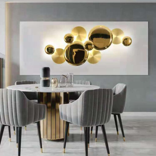 Phù điêu Kim Loại Trang Trí Kết Hợp Đèn Led mang đến vẻ đẹp hiện đại, sang trọng cho không gian sống của bạn. Thiết kế các hình tròn bóng bẩy được kết hợp tinh tế với ánh sáng đèn LED tạo hiệu ứng lung linh, bắt mắt. Sản phẩm không chỉ làm nổi bật bức tường trống trải mà còn tạo điểm nhấn nghệ thuật, thể hiện gu thẩm mỹ tinh tế của gia chủ. Phù điêu phù hợp với nhiều phong cách nội thất, đặc biệt là phong cách hiện đại và tối giản, giúp không gian trở nên ấm cúng và đẳng cấp hơn.