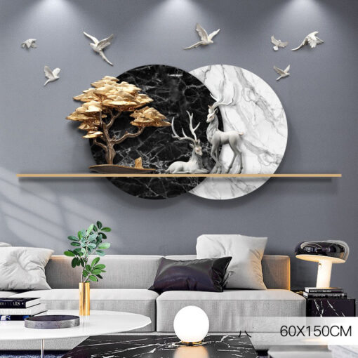 Bức tranh phù điêu treo tường đôi hươu giúp không gian trở nên sang trọng và đẳng cấp hơn. Những chi tiết tinh tế, kết hợp với chất liệu cao cấp, mang lại một cảm giác quý phái cho phòng khách. Không chỉ làm đẹp cho không gian, bức tranh còn thể hiện gu thẩm mỹ và sự tinh tế của gia chủ.