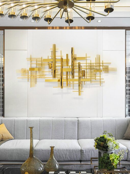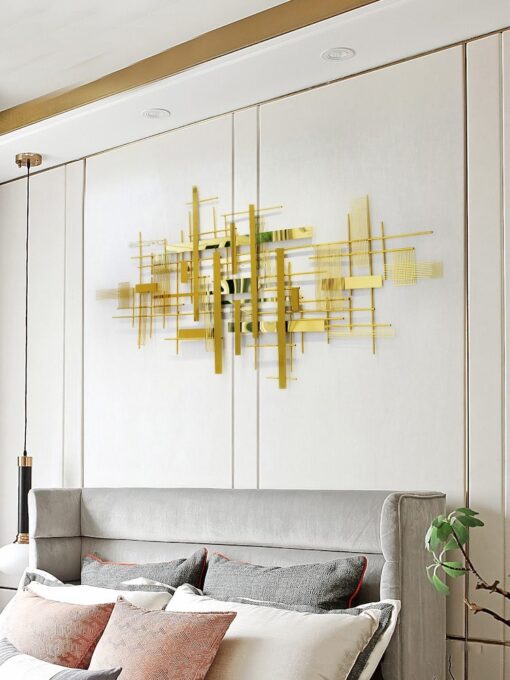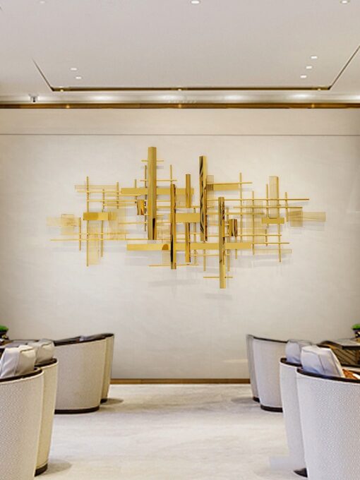 “Phù Điêu Treo Tường Hàng Rào” là tác phẩm trang trí độc đáo và hiện đại, tạo điểm nhấn nổi bật cho không gian sống. Với thiết kế tinh tế gồm các thanh kim loại vàng ánh, phối hợp theo hình khối và hàng rào xen kẽ, tác phẩm mang đến vẻ đẹp sang trọng và hài hòa. Sản phẩm thích hợp trang trí phòng khách, phòng làm việc hoặc không gian tiếp khách, góp phần nâng tầm phong cách kiến trúc đương đại. Đây là lựa chọn hoàn hảo cho những ai yêu thích sự phá cách nhưng vẫn tinh tế trong thiết kế nội thất.
