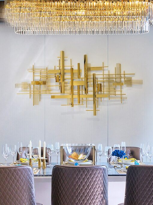 Phòng khách là nơi tiếp đón khách mời, là nơi thể hiện gu thẩm mỹ và phong cách sống của gia chủ. Phù điêu treo tường hàng rào sẽ là điểm nhấn lý tưởng giúp không gian này trở nên sang trọng và đẳng cấp. Những chi tiết sắc nét và sự phản chiếu ánh sáng từ chất liệu hợp kim mạ titan sẽ tạo ra một không gian đầy cảm hứng, thu hút mọi ánh nhìn.