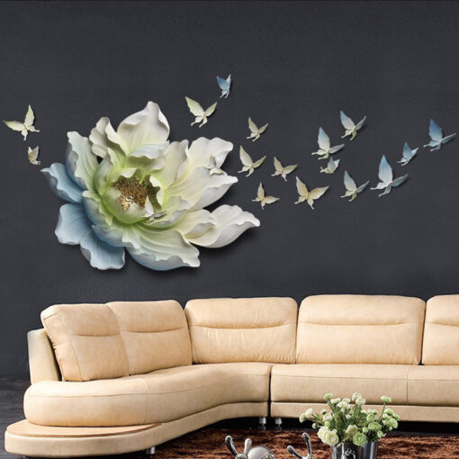 Phù điêu treo tường hoa mẫu đơn màu xanh