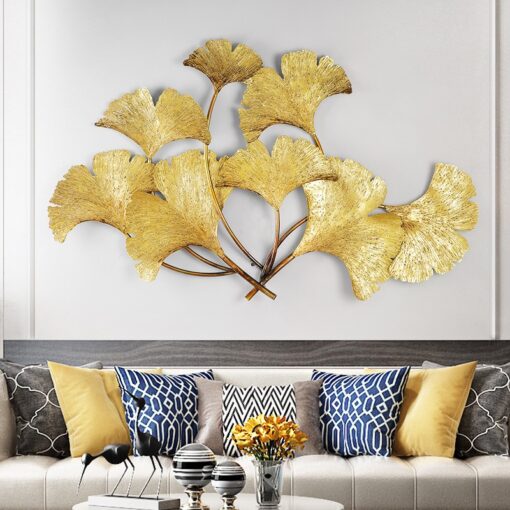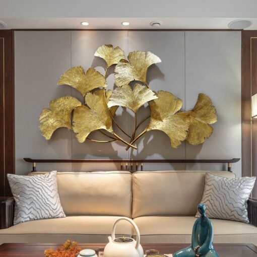 Trong phòng khách, bức phù điêu treo tường lá bạch quả sẽ trở thành một điểm nhấn nghệ thuật, làm nổi bật phong cách sống của gia chủ. Sự kết hợp giữa kim loại và thiết kế lá cây mang lại một sự hòa hợp giữa tự nhiên và hiện đại, tạo nên một không gian vừa tinh tế, vừa sang trọng.