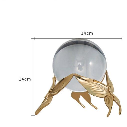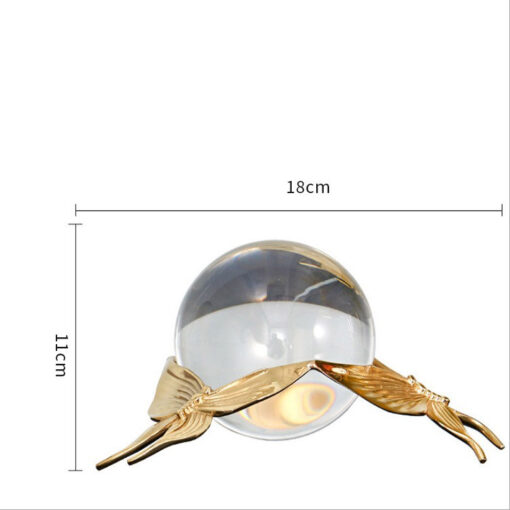 Quả cầu pha lê không chỉ có ý nghĩa phong thủy, mà còn là món đồ trang trí tuyệt vời. Khi ánh sáng chiếu qua quả cầu, các tia sáng lấp lánh tạo nên hiệu ứng quang học đẹp mắt, mang đến vẻ lung linh và sang trọng cho không gian. Kết hợp với thiết kế cánh bướm vàng, sản phẩm trở thành điểm nhấn nổi bật, giúp không gian thêm phần cuốn hút và đẳng cấp.