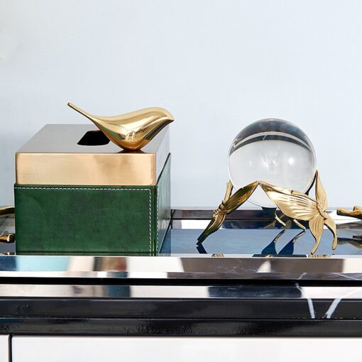 Quả Cầu Pha Lê Cánh Bướm Vàng Sang Trọng có thể bày bàn trà phòng khách, kệ tủ, bàn làm việc