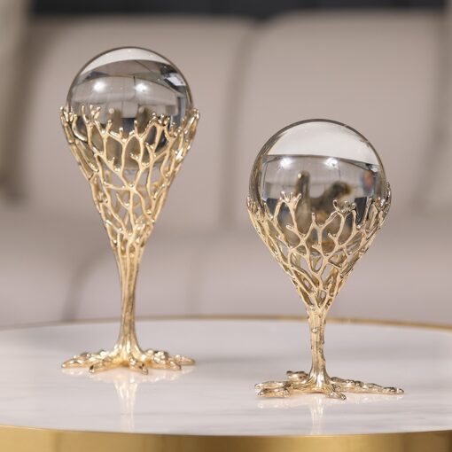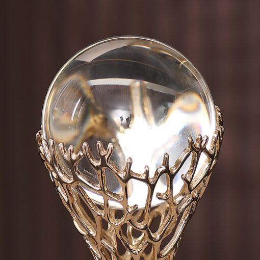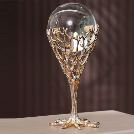 Thiết kế cành vàng nâng đỡ quả cầu pha lê không chỉ là điểm nhấn nghệ thuật mà còn thể hiện sự độc đáo, không trùng lặp với các món đồ trang trí thông thường.