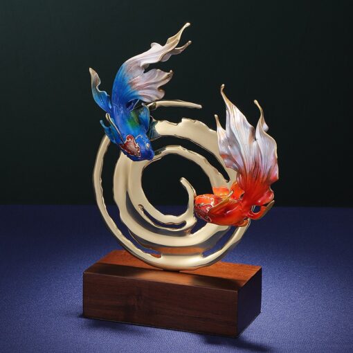 Tượng đôi cá múa lượn bằng đồng để bàn làm việc ý nghĩa