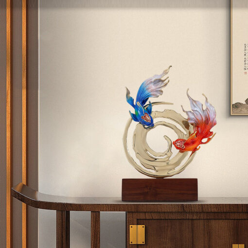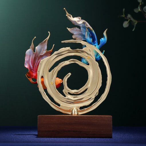 Hình ảnh đôi cá uyển chuyển trong dòng chảy xoắn ốc mang lại nguồn năng lượng tích cực, giúp không gian sống luôn tươi mới và tràn đầy cảm hứng. Đây là vật phẩm phong thủy lý tưởng để tạo môi trường làm việc hiệu quả, sáng tạo và cân bằng.