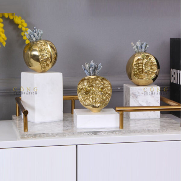 Công Decor tự hào mang đến các sản phẩm phong thủy và trang trí nội thất cao cấp. Tam bảo lựu vàng được chế tác từ những vật liệu chất lượng nhất, đảm bảo độ bền đẹp theo thời gian.