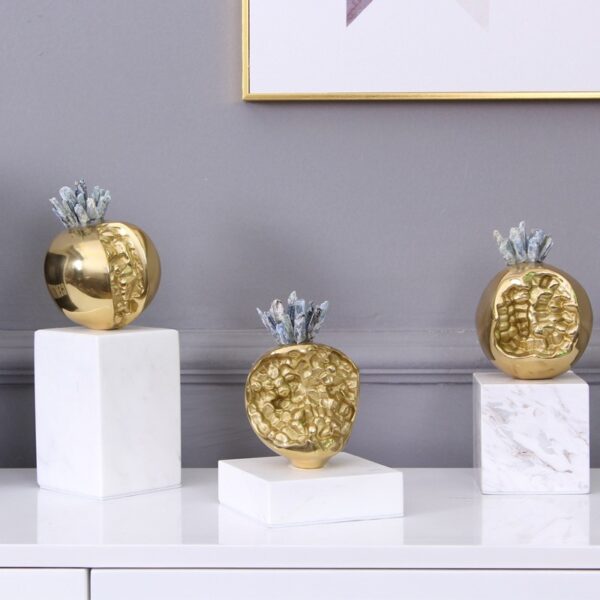 Bộ sản phẩm Tam bảo lựu vàng được chế tác từ đồng và đá pha lê cao cấp không chỉ khắc họa chân thực hình ảnh của quả lựu mà còn thổi hồn vào từng chi tiết, biến nó thành một món đồ phong thủy đầy ý nghĩa.