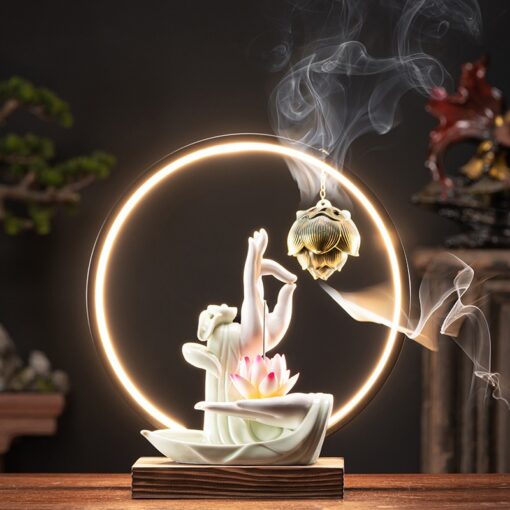 - Thiết Kế Tinh Xảo: Từng chi tiết trên thác khói được chế tác tỉ mỉ, từ tượng Phật nâng hoa sen đến các yếu tố liên quan đến trầm hương.